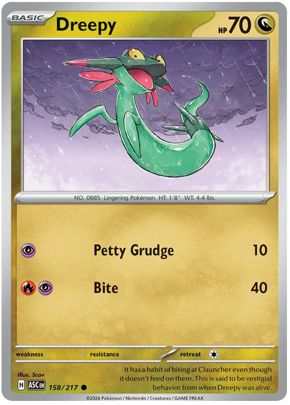 Ascended Heroes - 158/217 - Dreepy is een Common kaart in de staat Near Mint.